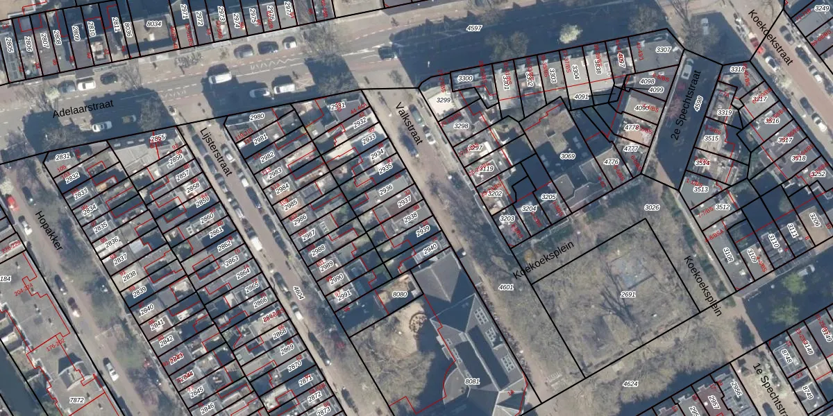 Het perceel waarop Valkstraat 30 staat heeft een oppervlakte van 68 m². Dit is een klein perceel. De perceeloppervlakte wordt geregistreerd door het Kadaster. Gedetailleerde informatie over de maten van dit perceel kunt u vinden in het rapport Kadastrale kaart met maatvoering van Valkstraat 30.