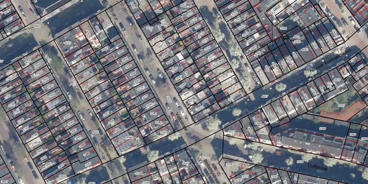 Het perceel waarop Valkstraat 5 staat heeft een oppervlakte van 78 m². Dit is een klein perceel. De perceeloppervlakte wordt geregistreerd door het Kadaster. Gedetailleerde informatie over de maten van dit perceel kunt u vinden in het rapport Kadastrale kaart met maatvoering van Valkstraat 5.