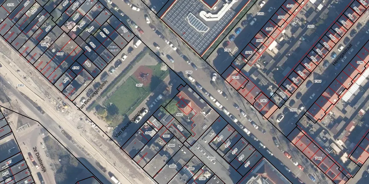 Het perceel waarop Van Beuningenplein 4-A staat heeft een oppervlakte van 488 m². Dit is een groot perceel. De perceeloppervlakte wordt geregistreerd door het Kadaster. Gedetailleerde informatie over de maten van dit perceel kunt u vinden in het rapport Kadastrale kaart met maatvoering van Van Beuningenplein 4-A.
