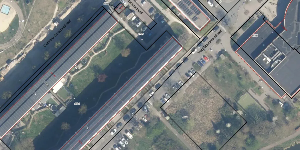 Het perceel waarop Van Brammendreef 19 staat heeft een oppervlakte van 8147 m². Dit is een zeer groot perceel. De perceeloppervlakte wordt geregistreerd door het Kadaster. Gedetailleerde informatie over de maten van dit perceel kunt u vinden in het rapport Kadastrale kaart met maatvoering van Van Brammendreef 19.