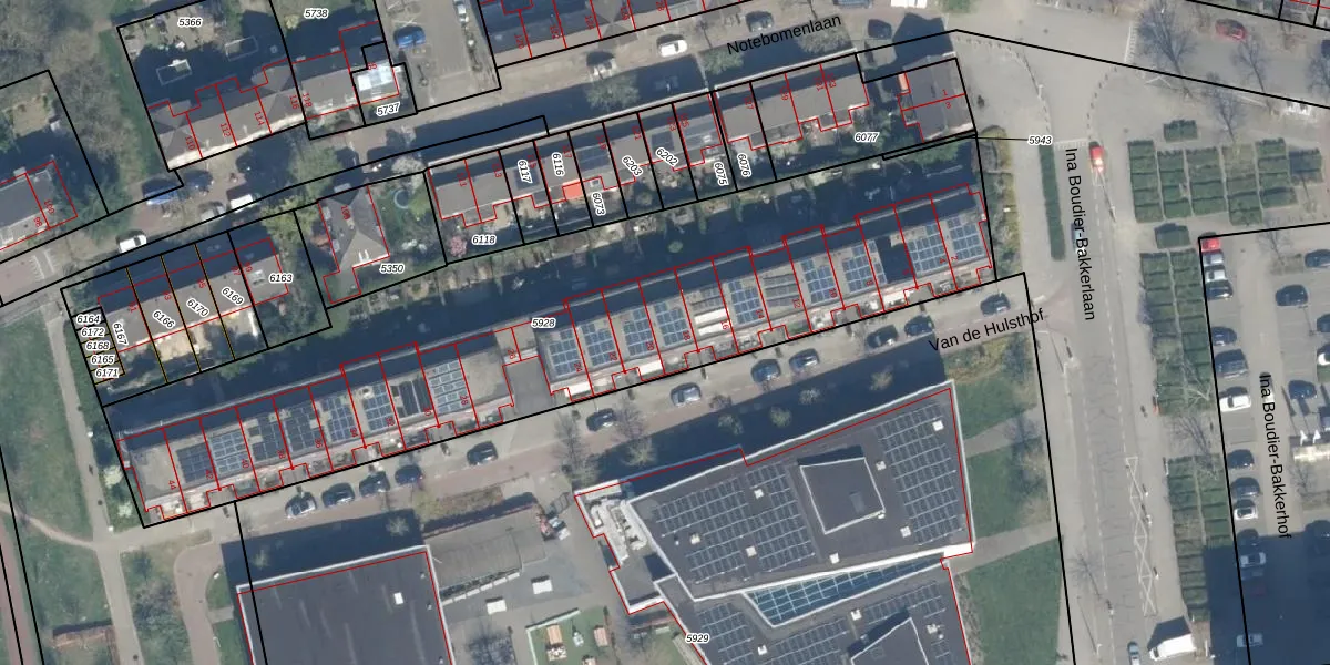 Het perceel waarop Van de Hulsthof 18 staat heeft een oppervlakte van 3115 m². Dit is een zeer groot perceel. De perceeloppervlakte wordt geregistreerd door het Kadaster. Gedetailleerde informatie over de maten van dit perceel kunt u vinden in het rapport Kadastrale kaart met maatvoering van Van de Hulsthof 18.