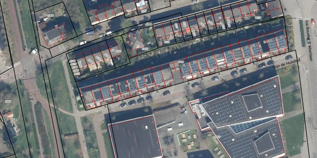 Het perceel waarop Van de Hulsthof 28 staat heeft een oppervlakte van 3115 m². Dit is een zeer groot perceel. De perceeloppervlakte wordt geregistreerd door het Kadaster. Gedetailleerde informatie over de maten van dit perceel kunt u vinden in het rapport Kadastrale kaart met maatvoering van Van de Hulsthof 28.