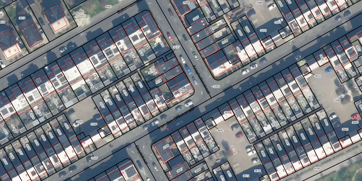 Het perceel waarop Van den Broekstraat 64 staat heeft een oppervlakte van 184 m². Dit is een middelgroot perceel. De perceeloppervlakte wordt geregistreerd door het Kadaster. Gedetailleerde informatie over de maten van dit perceel kunt u vinden in het rapport Kadastrale kaart met maatvoering van Van den Broekstraat 64.