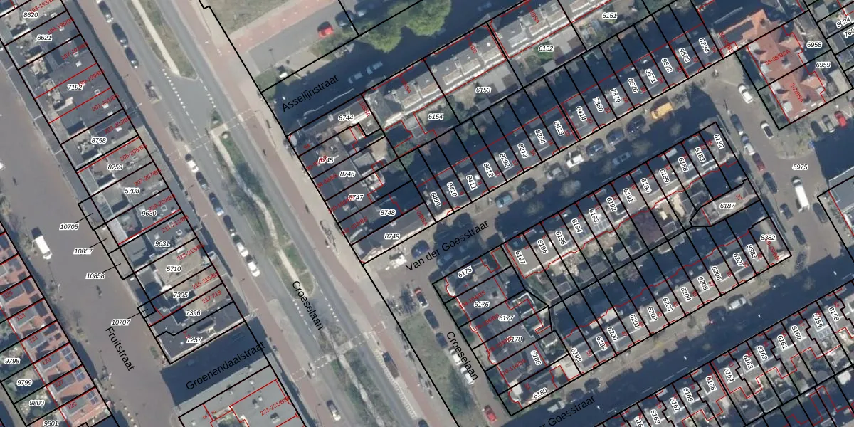 Het perceel waarop Van der Goesstraat 2 staat heeft een oppervlakte van 110 m². Dit is een middelgroot perceel. De perceeloppervlakte wordt geregistreerd door het Kadaster. Gedetailleerde informatie over de maten van dit perceel kunt u vinden in het rapport Kadastrale kaart met maatvoering van Van der Goesstraat 2.