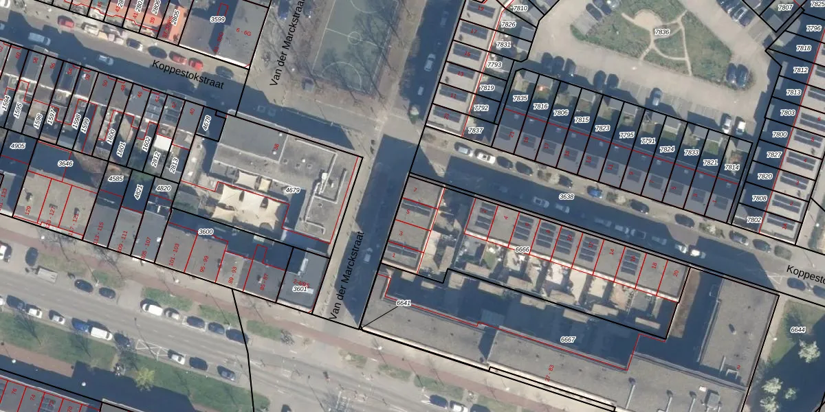 Het perceel waarop Van der Marckstraat 5 staat heeft een oppervlakte van 1385 m². Dit is een zeer groot perceel. De perceeloppervlakte wordt geregistreerd door het Kadaster. Gedetailleerde informatie over de maten van dit perceel kunt u vinden in het rapport Kadastrale kaart met maatvoering van Van der Marckstraat 5.