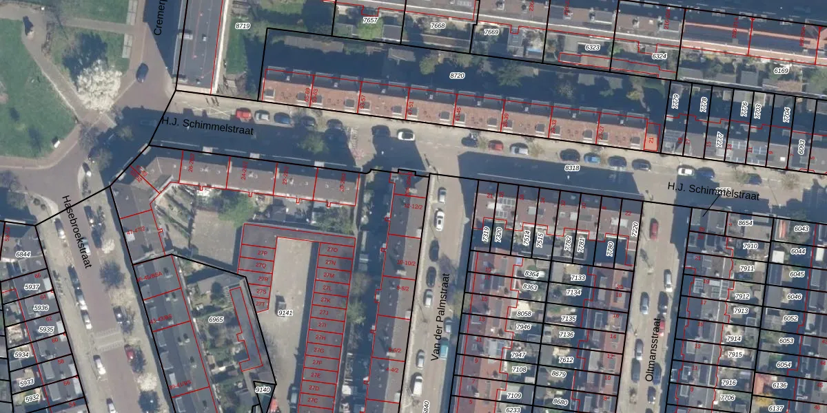 Het perceel waarop Van der Palmstraat 12-1 staat heeft een oppervlakte van 3700 m². Dit is een zeer groot perceel. De perceeloppervlakte wordt geregistreerd door het Kadaster. Gedetailleerde informatie over de maten van dit perceel kunt u vinden in het rapport Kadastrale kaart met maatvoering van Van der Palmstraat 12-1.