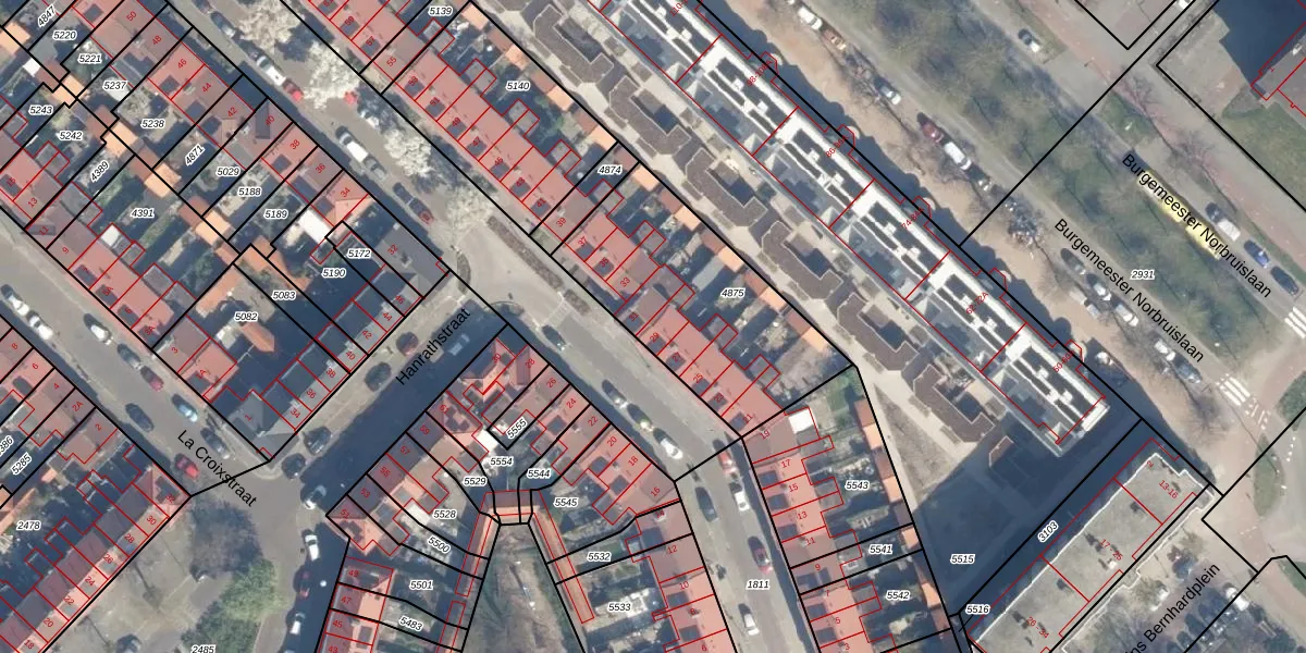 Het perceel waarop Van der Pekstraat 29 staat heeft een oppervlakte van 853 m². Dit is een groot perceel. De perceeloppervlakte wordt geregistreerd door het Kadaster. Gedetailleerde informatie over de maten van dit perceel kunt u vinden in het rapport Kadastrale kaart met maatvoering van Van der Pekstraat 29.