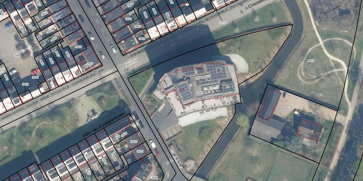 Het adres is gelegen op perceel 2662 in de sectie V en de kadastrale gemeente Utrecht. De kadastrale aanduiding is aldus UTT00-V-2662. De oppervlakte van het perceel is 3349 m². Dat is groter dan gemiddeld in Utrecht, waar de gemiddelde perceeloppervlakte op 1439,02 m² ligt. De grootste perceeloppervlakte in de kadastrale gemeente is 90,1 ha. De kleinste oppervlakte bedraagt 0 m². Op het perceel liggen in totaal 22 adressen. In de Basisregistratie Kadaster (BRK) werden de grenzen van het perceel geregistreerd op 31-10-2008.