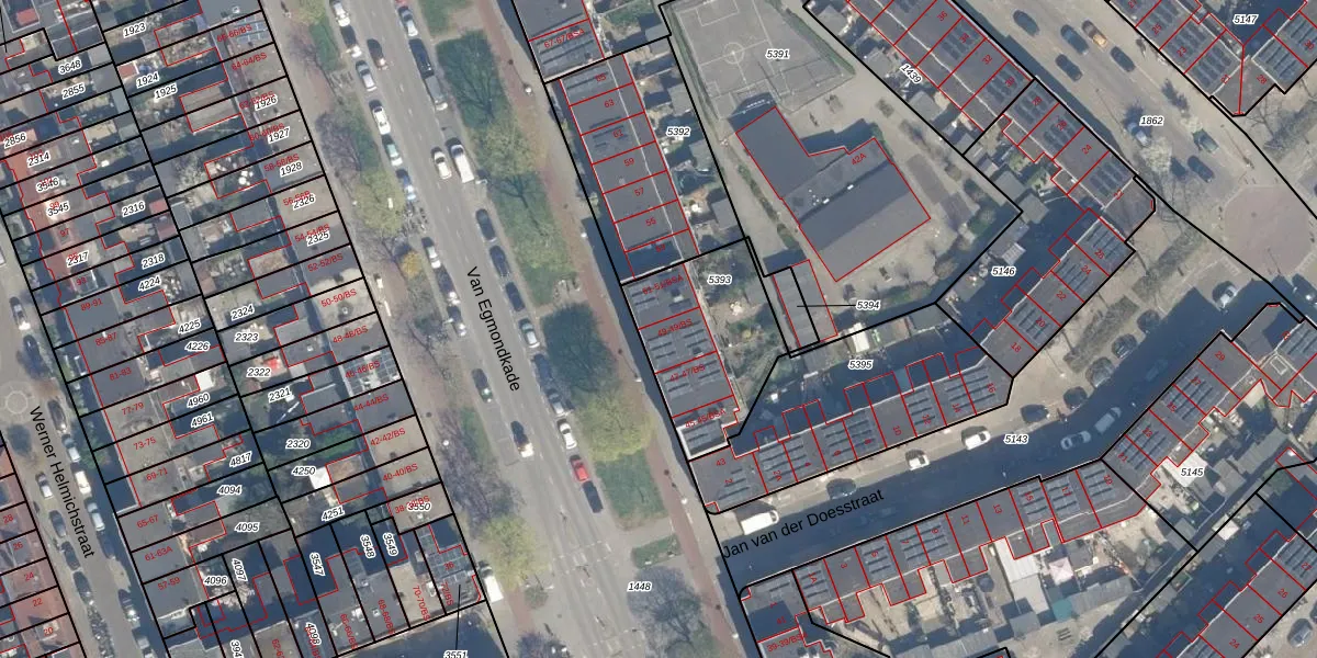 Van Egmondkade 49 is gelegen op kadastraal perceel ZLN02C5393. Deze kadastrale aanduiding is uniek en wordt gebruikt door het Kadaster om eigendomsrechten en andere zakelijke rechten vast te leggen. Het perceel maakt onderdeel uit van de kadastrale gemeente Zuilen.