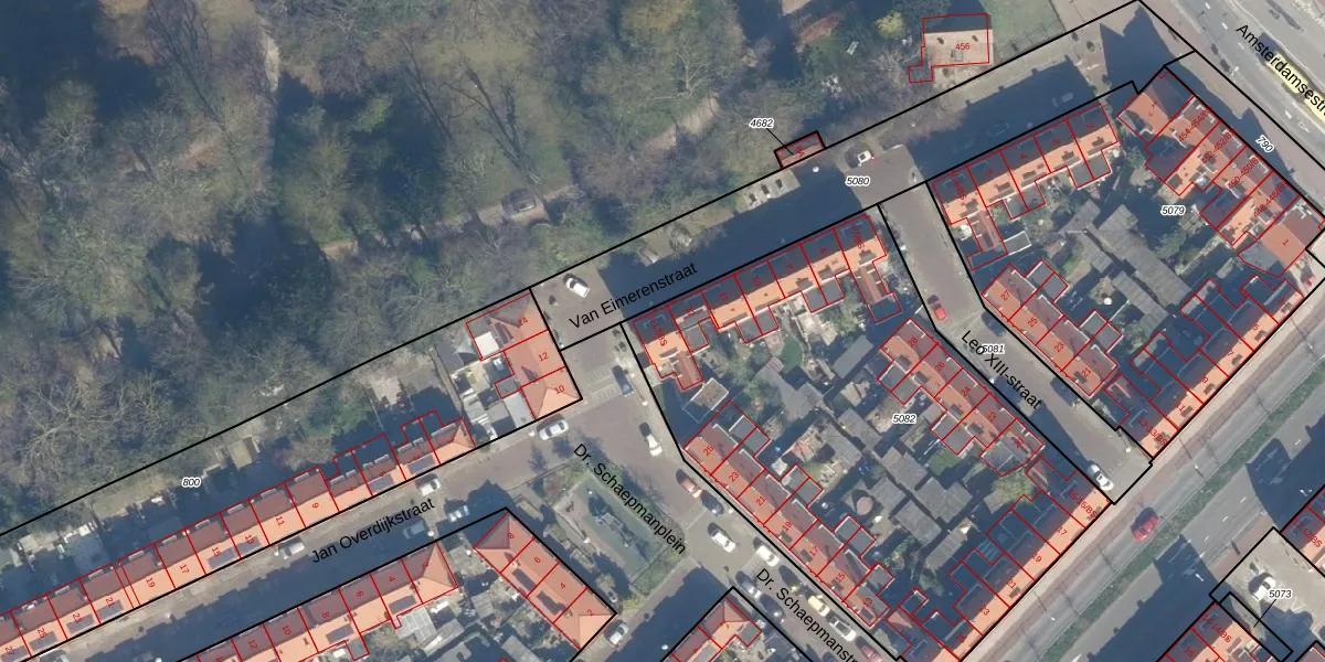 Van Eimerenstraat 13-BS is gelegen op kadastraal perceel ZLN02C5082. Deze kadastrale aanduiding is uniek en wordt gebruikt door het Kadaster om eigendomsrechten en andere zakelijke rechten vast te leggen. Het perceel maakt onderdeel uit van de kadastrale gemeente Zuilen.