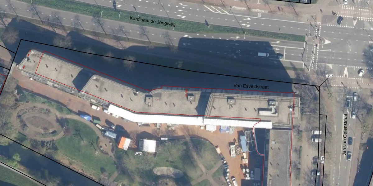 Het perceel waarop Van Esveldstraat 171 staat heeft een oppervlakte van 1,3 ha. Dit is een zeer groot perceel. De perceeloppervlakte wordt geregistreerd door het Kadaster. Gedetailleerde informatie over de maten van dit perceel kunt u vinden in het rapport Kadastrale kaart met maatvoering van Van Esveldstraat 171.