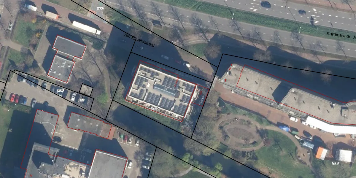 Het perceel waarop Van Esveldstraat 31-41 staat heeft een oppervlakte van 1489 m². Dit is een zeer groot perceel. De perceeloppervlakte wordt geregistreerd door het Kadaster. Gedetailleerde informatie over de maten van dit perceel kunt u vinden in het rapport Kadastrale kaart met maatvoering van Van Esveldstraat 31-41.
