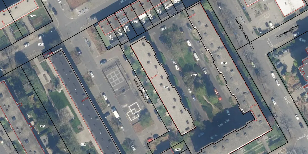 Van Eysingalaan 179 is gelegen op kadastraal perceel UTT00S1316. Deze kadastrale aanduiding is uniek en wordt gebruikt door het Kadaster om eigendomsrechten en andere zakelijke rechten vast te leggen. Het perceel maakt onderdeel uit van de kadastrale gemeente Utrecht.
