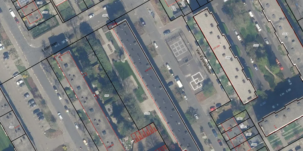 Het perceel waarop Van Eysingalaan 260 staat heeft een oppervlakte van 3206 m². Dit is een zeer groot perceel. De perceeloppervlakte wordt geregistreerd door het Kadaster. Gedetailleerde informatie over de maten van dit perceel kunt u vinden in het rapport Kadastrale kaart met maatvoering van Van Eysingalaan 260.