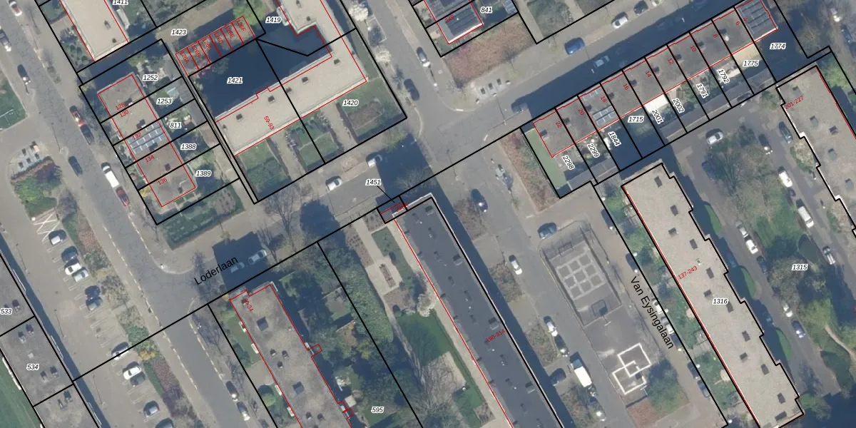 Het perceel waarop Van Eysingalaan 308 staat heeft een oppervlakte van 3206 m². Dit is een zeer groot perceel. De perceeloppervlakte wordt geregistreerd door het Kadaster. Gedetailleerde informatie over de maten van dit perceel kunt u vinden in het rapport Kadastrale kaart met maatvoering van Van Eysingalaan 308.