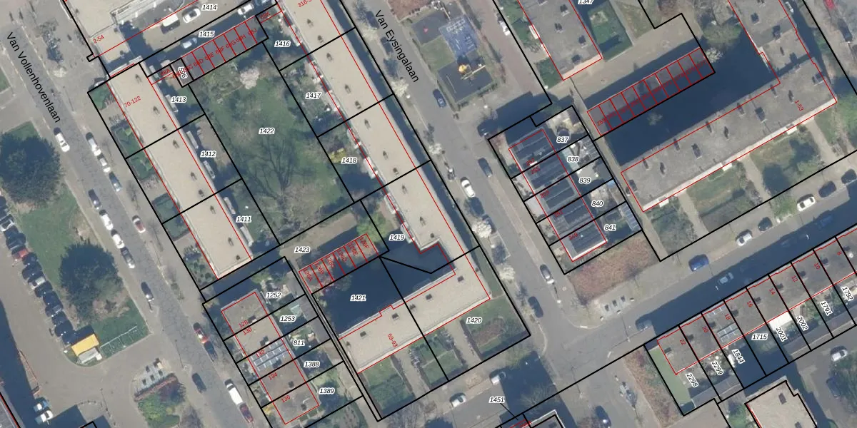 Het perceel waarop Van Eysingalaan 330 staat heeft een oppervlakte van 427 m². Dit is een groot perceel. De perceeloppervlakte wordt geregistreerd door het Kadaster. Gedetailleerde informatie over de maten van dit perceel kunt u vinden in het rapport Kadastrale kaart met maatvoering van Van Eysingalaan 330.