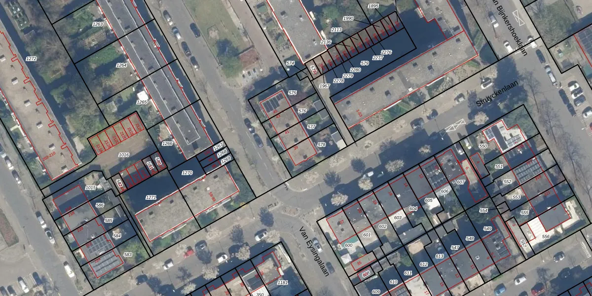 Het perceel waarop Van Eysingalaan 39 staat heeft een oppervlakte van 196 m². Dit is een middelgroot perceel. De perceeloppervlakte wordt geregistreerd door het Kadaster. Gedetailleerde informatie over de maten van dit perceel kunt u vinden in het rapport Kadastrale kaart met maatvoering van Van Eysingalaan 39.