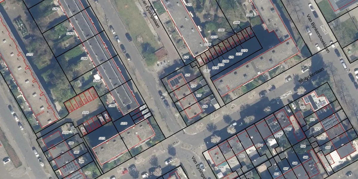 Gebruik de zoekbalk of klik op een perceel voor informatie over de adressen binnen dit perceel.