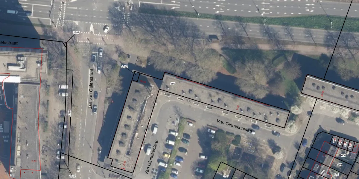 Van Ginnekenlaan 30 is gelegen op kadastraal perceel UTT00L592. Deze kadastrale aanduiding is uniek en wordt gebruikt door het Kadaster om eigendomsrechten en andere zakelijke rechten vast te leggen. Het perceel maakt onderdeel uit van de kadastrale gemeente Utrecht.