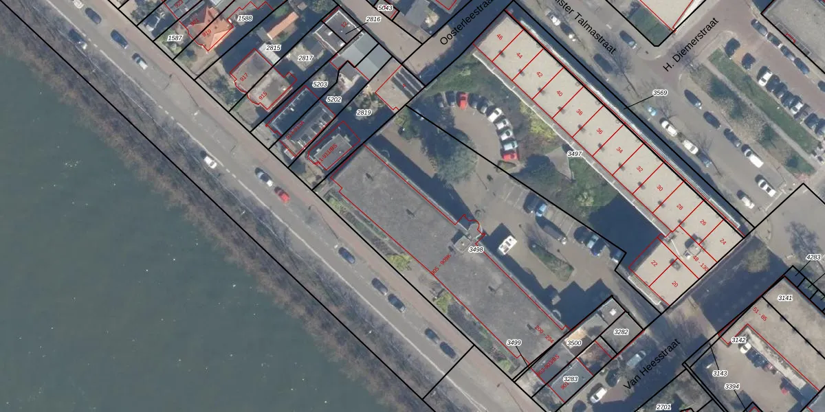 Het perceel waarop Van Heesstraat 224 staat heeft een oppervlakte van 2500 m². Dit is een zeer groot perceel. De perceeloppervlakte wordt geregistreerd door het Kadaster. Gedetailleerde informatie over de maten van dit perceel kunt u vinden in het rapport Kadastrale kaart met maatvoering van Van Heesstraat 224.