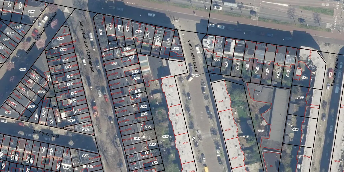 Het perceel waarop Van Heutszstraat 17 staat heeft een oppervlakte van 2195 m². Dit is een zeer groot perceel. De perceeloppervlakte wordt geregistreerd door het Kadaster. Gedetailleerde informatie over de maten van dit perceel kunt u vinden in het rapport Kadastrale kaart met maatvoering van Van Heutszstraat 17.