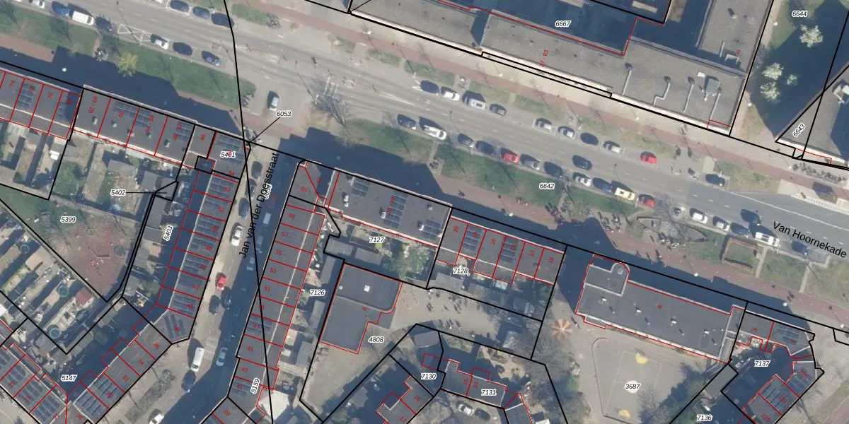 Het perceel waarop Van Hoornekade 26 staat heeft een oppervlakte van 625 m². Dit is een groot perceel. De perceeloppervlakte wordt geregistreerd door het Kadaster. Gedetailleerde informatie over de maten van dit perceel kunt u vinden in het rapport Kadastrale kaart met maatvoering van Van Hoornekade 26.