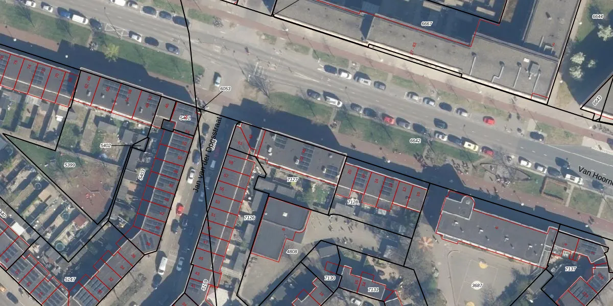 Het perceel waarop Van Hoornekade 28 staat heeft een oppervlakte van 625 m². Dit is een groot perceel. De perceeloppervlakte wordt geregistreerd door het Kadaster. Gedetailleerde informatie over de maten van dit perceel kunt u vinden in het rapport Kadastrale kaart met maatvoering van Van Hoornekade 28.