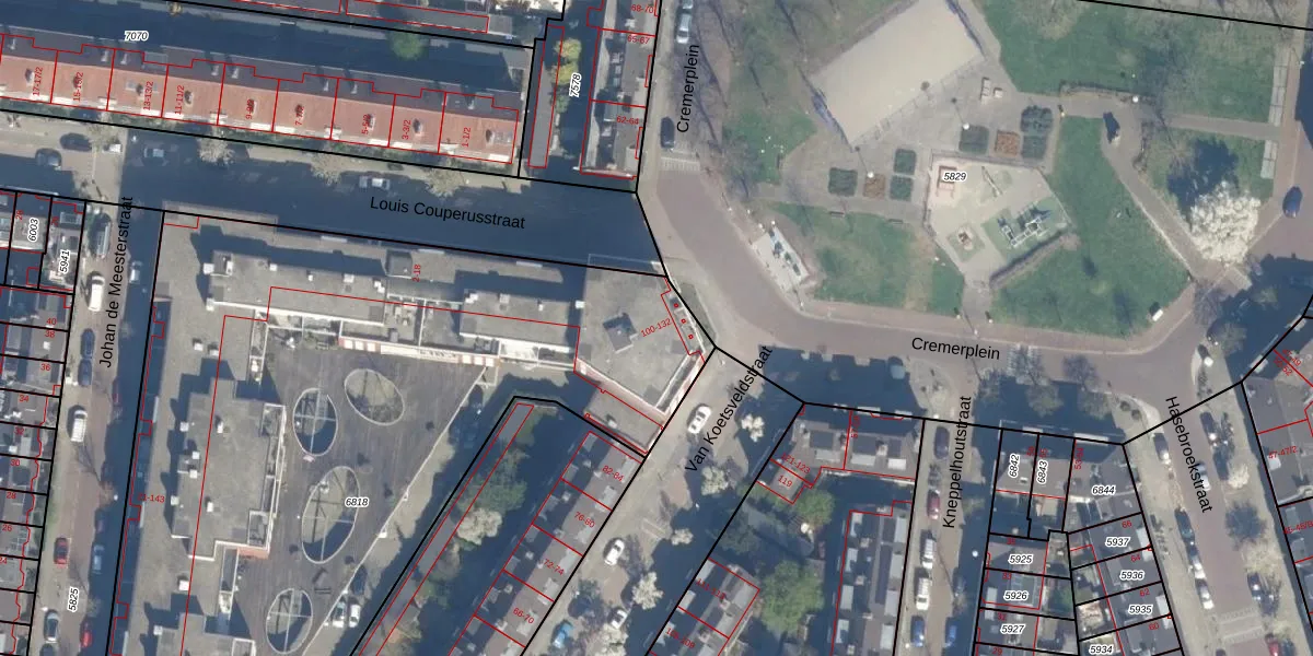 Het perceel waarop Van Koetsveldstraat 100 staat heeft een oppervlakte van 4682 m². Dit is een zeer groot perceel. De perceeloppervlakte wordt geregistreerd door het Kadaster. Gedetailleerde informatie over de maten van dit perceel kunt u vinden in het rapport Kadastrale kaart met maatvoering van Van Koetsveldstraat 100.