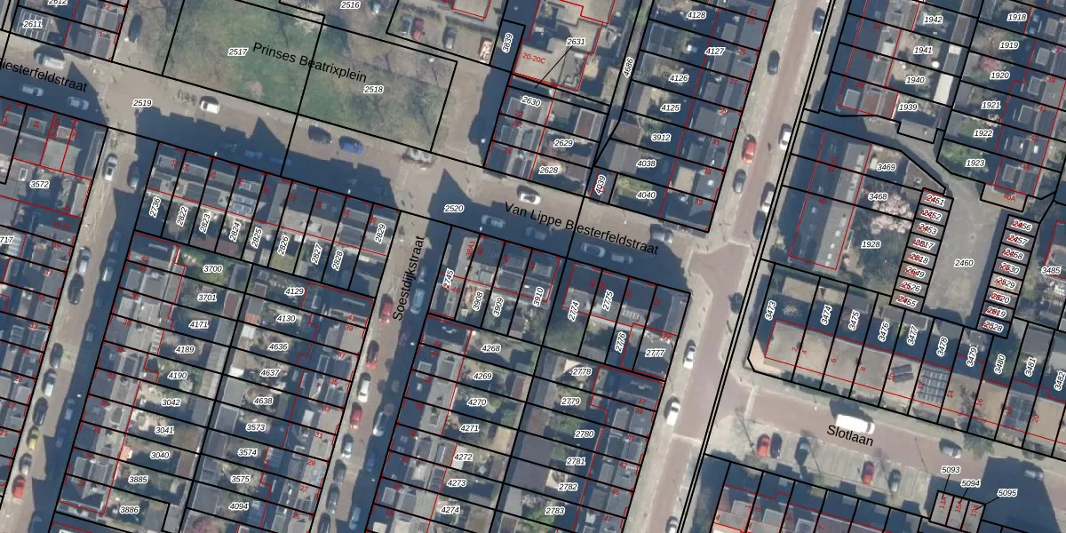 Gebruik de zoekbalk of klik op een perceel voor informatie over de adressen binnen dit perceel.
