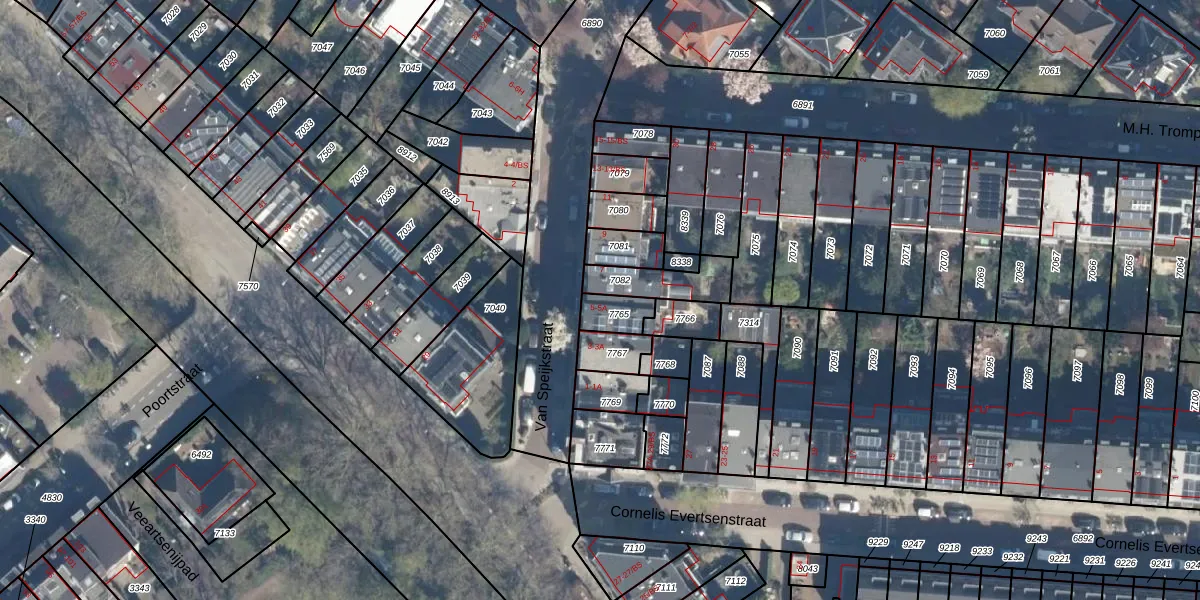 Het perceel waarop Van Speijkstraat 5 staat heeft een oppervlakte van 77 m². Dit is een klein perceel. De perceeloppervlakte wordt geregistreerd door het Kadaster. Gedetailleerde informatie over de maten van dit perceel kunt u vinden in het rapport Kadastrale kaart met maatvoering van Van Speijkstraat 5.
