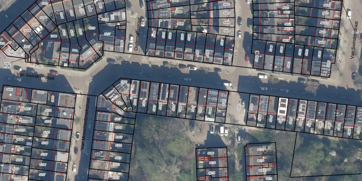 Van Swindenstraat 21 is gelegen op kadastraal perceel LWR01C5326. Deze kadastrale aanduiding is uniek en wordt gebruikt door het Kadaster om eigendomsrechten en andere zakelijke rechten vast te leggen. Het perceel maakt onderdeel uit van de kadastrale gemeente Lauwerecht.