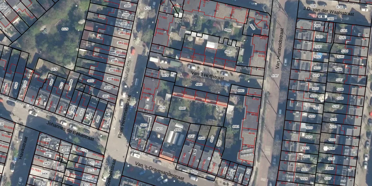 Het perceel waarop Van 't Hoffstraat 10 staat heeft een oppervlakte van 530 m². Dit is een groot perceel. De perceeloppervlakte wordt geregistreerd door het Kadaster. Gedetailleerde informatie over de maten van dit perceel kunt u vinden in het rapport Kadastrale kaart met maatvoering van Van 't Hoffstraat 10.