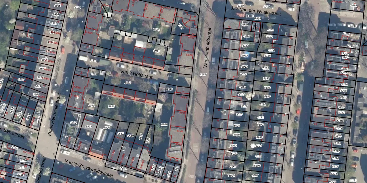 Het perceel waarop Van 't Hoffstraat 2 staat heeft een oppervlakte van 80 m². Dit is een klein perceel. De perceeloppervlakte wordt geregistreerd door het Kadaster. Gedetailleerde informatie over de maten van dit perceel kunt u vinden in het rapport Kadastrale kaart met maatvoering van Van 't Hoffstraat 2.