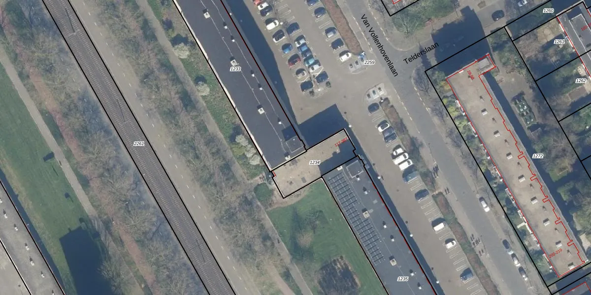 Het perceel waarop Van Vollenhovenlaan 201 staat heeft een oppervlakte van 1084 m². Dit is een zeer groot perceel. De perceeloppervlakte wordt geregistreerd door het Kadaster. Gedetailleerde informatie over de maten van dit perceel kunt u vinden in het rapport Kadastrale kaart met maatvoering van Van Vollenhovenlaan 201.