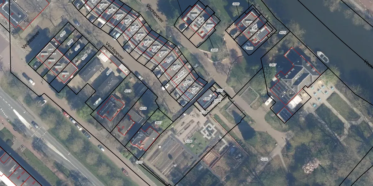 Vechtoever 1 is gelegen op kadastraal perceel ZLN02B3704. Deze kadastrale aanduiding is uniek en wordt gebruikt door het Kadaster om eigendomsrechten en andere zakelijke rechten vast te leggen. Het perceel maakt onderdeel uit van de kadastrale gemeente Zuilen.