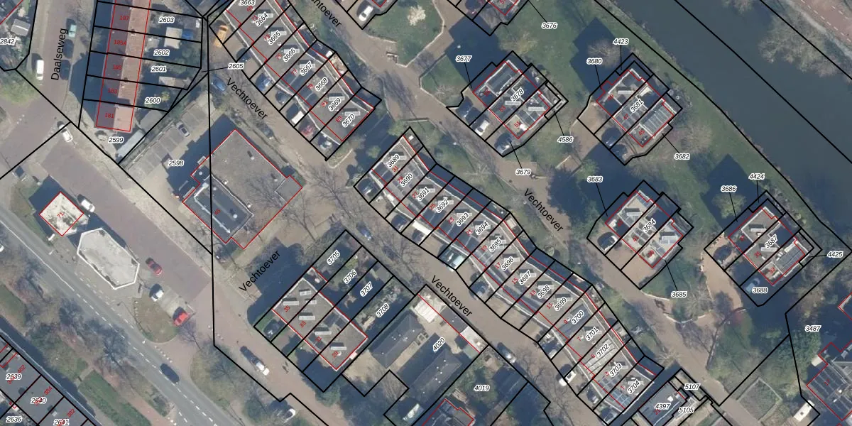 Het perceel waarop Vechtoever 25 staat heeft een oppervlakte van 95 m². Dit is een klein perceel. De perceeloppervlakte wordt geregistreerd door het Kadaster. Gedetailleerde informatie over de maten van dit perceel kunt u vinden in het rapport Kadastrale kaart met maatvoering van Vechtoever 25.
