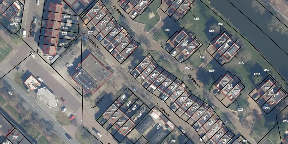 Gebruik de zoekbalk of klik op een perceel voor informatie over de adressen binnen dit perceel.