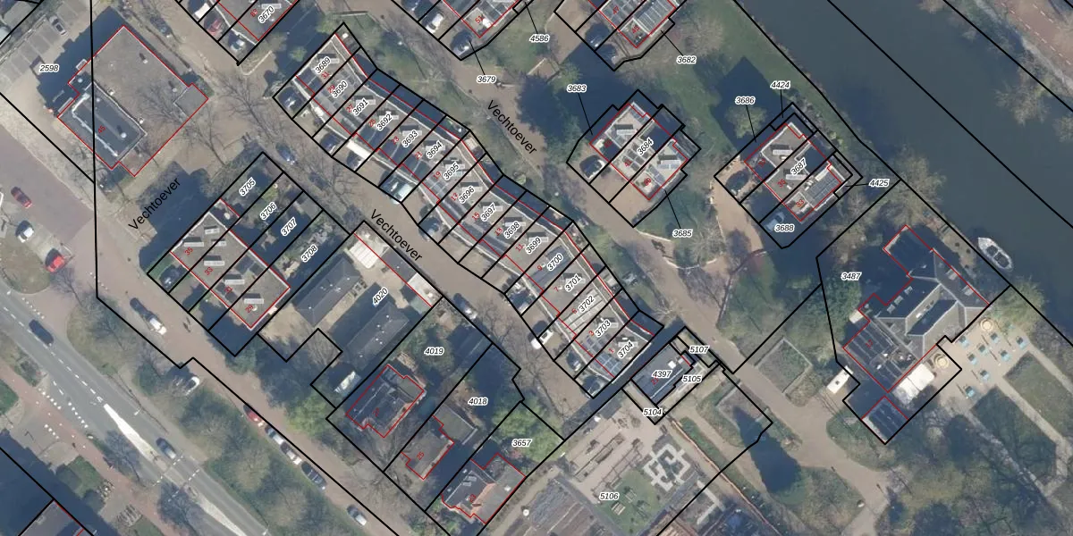 Vechtoever 9 is gelegen op kadastraal perceel ZLN02B3700. Deze kadastrale aanduiding is uniek en wordt gebruikt door het Kadaster om eigendomsrechten en andere zakelijke rechten vast te leggen. Het perceel maakt onderdeel uit van de kadastrale gemeente Zuilen.