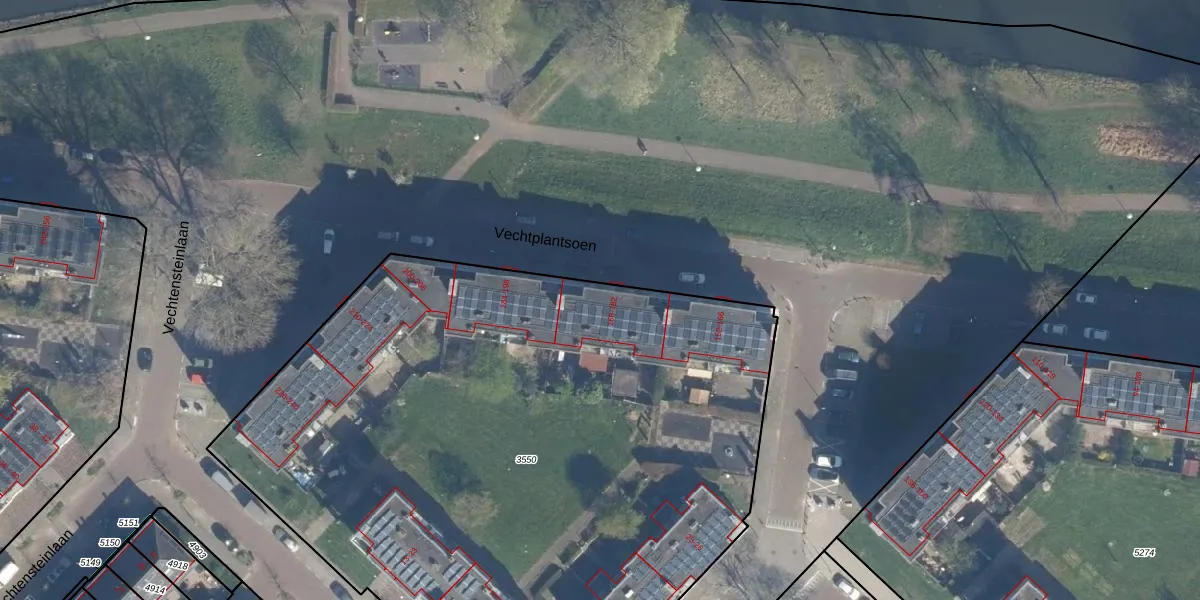 Het perceel waarop Vechtplantsoen 174 staat heeft een oppervlakte van 4720 m². Dit is een zeer groot perceel. De perceeloppervlakte wordt geregistreerd door het Kadaster. Gedetailleerde informatie over de maten van dit perceel kunt u vinden in het rapport Kadastrale kaart met maatvoering van Vechtplantsoen 174.