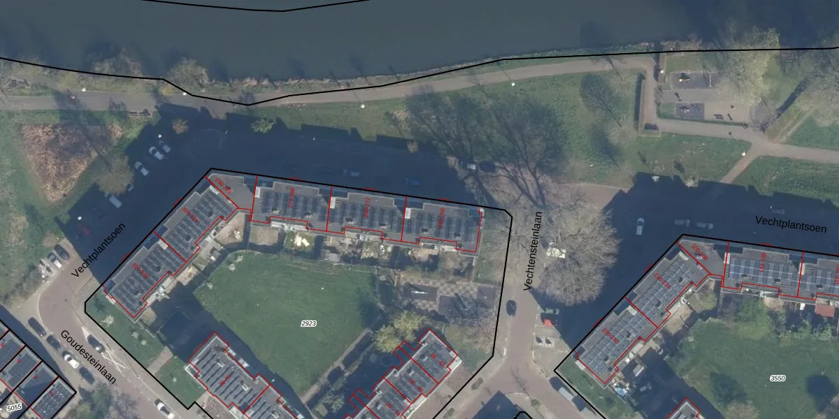 Het perceel waarop Vechtplantsoen 256 staat heeft een oppervlakte van 5320 m². Dit is een zeer groot perceel. De perceeloppervlakte wordt geregistreerd door het Kadaster. Gedetailleerde informatie over de maten van dit perceel kunt u vinden in het rapport Kadastrale kaart met maatvoering van Vechtplantsoen 256.