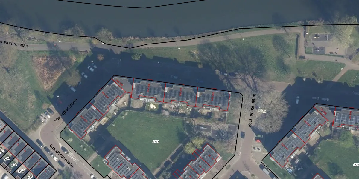 Het perceel waarop Vechtplantsoen 260 staat heeft een oppervlakte van 5320 m². Dit is een zeer groot perceel. De perceeloppervlakte wordt geregistreerd door het Kadaster. Gedetailleerde informatie over de maten van dit perceel kunt u vinden in het rapport Kadastrale kaart met maatvoering van Vechtplantsoen 260.