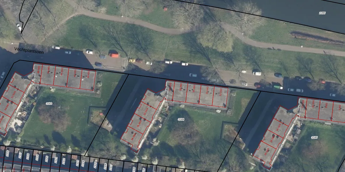 Het perceel waarop Vechtplantsoen 30-2 staat heeft een oppervlakte van 3870 m². Dit is een zeer groot perceel. De perceeloppervlakte wordt geregistreerd door het Kadaster. Gedetailleerde informatie over de maten van dit perceel kunt u vinden in het rapport Kadastrale kaart met maatvoering van Vechtplantsoen 30-2.