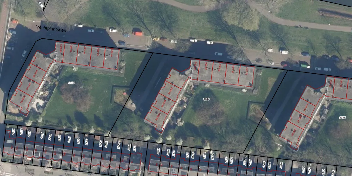 Het perceel waarop Vechtplantsoen 34-1 staat heeft een oppervlakte van 3870 m². Dit is een zeer groot perceel. De perceeloppervlakte wordt geregistreerd door het Kadaster. Gedetailleerde informatie over de maten van dit perceel kunt u vinden in het rapport Kadastrale kaart met maatvoering van Vechtplantsoen 34-1.