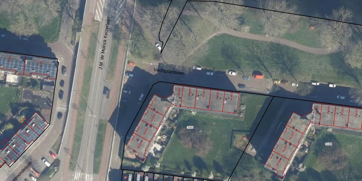 Het perceel waarop Vechtplantsoen 48-1 staat heeft een oppervlakte van 3253 m². Dit is een zeer groot perceel. De perceeloppervlakte wordt geregistreerd door het Kadaster. Gedetailleerde informatie over de maten van dit perceel kunt u vinden in het rapport Kadastrale kaart met maatvoering van Vechtplantsoen 48-1.