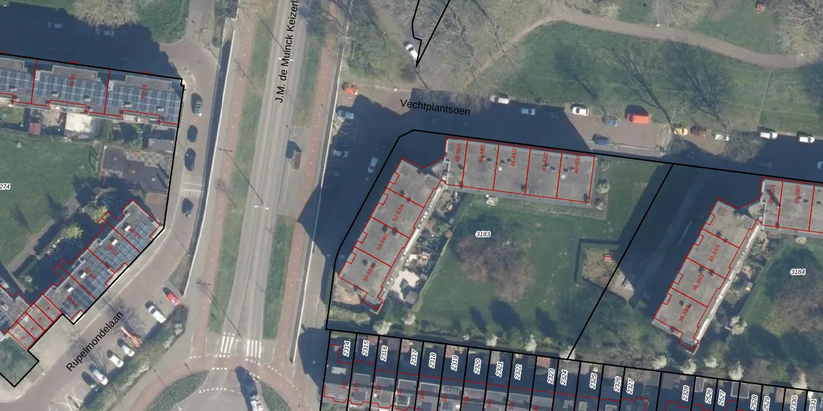Het perceel waarop Vechtplantsoen 52-2 staat heeft een oppervlakte van 3253 m². Dit is een zeer groot perceel. De perceeloppervlakte wordt geregistreerd door het Kadaster. Gedetailleerde informatie over de maten van dit perceel kunt u vinden in het rapport Kadastrale kaart met maatvoering van Vechtplantsoen 52-2.