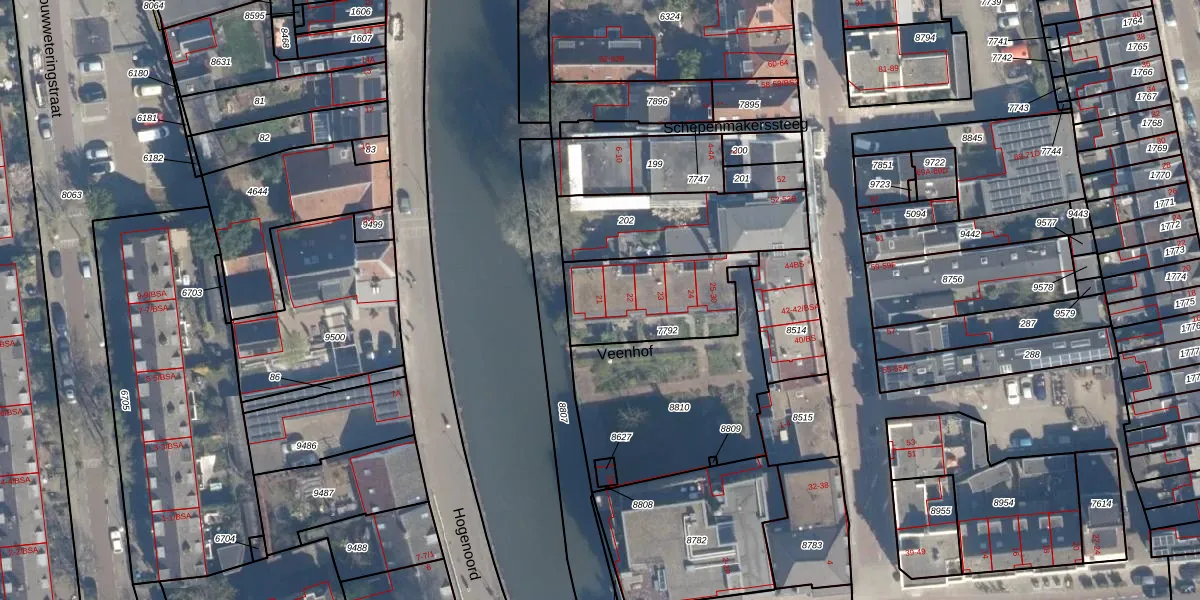 Het perceel waarop Veenhof 21 staat heeft een oppervlakte van 405 m². Dit is een groot perceel. De perceeloppervlakte wordt geregistreerd door het Kadaster. Gedetailleerde informatie over de maten van dit perceel kunt u vinden in het rapport Kadastrale kaart met maatvoering van Veenhof 21.