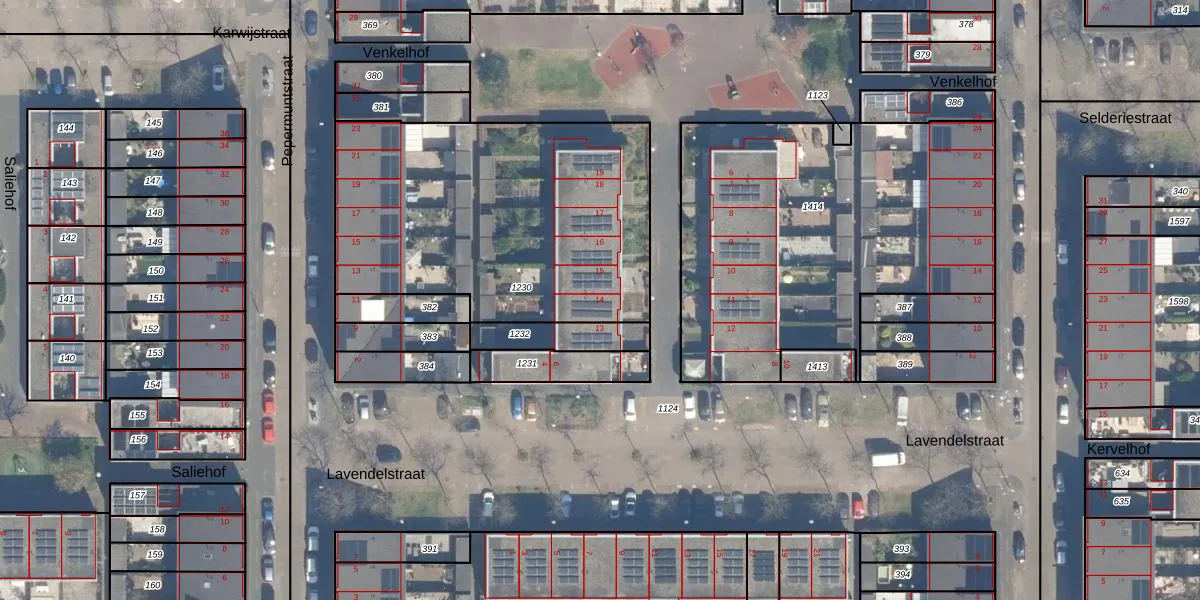 Het perceel waarop Venkelhof 14 staat heeft een oppervlakte van 1645 m². Dit is een zeer groot perceel. De perceeloppervlakte wordt geregistreerd door het Kadaster. Gedetailleerde informatie over de maten van dit perceel kunt u vinden in het rapport Kadastrale kaart met maatvoering van Venkelhof 14.