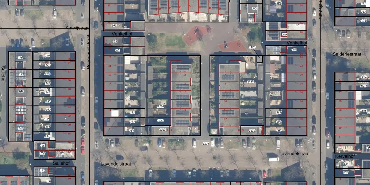 Het perceel waarop Venkelhof 16 staat heeft een oppervlakte van 1645 m². Dit is een zeer groot perceel. De perceeloppervlakte wordt geregistreerd door het Kadaster. Gedetailleerde informatie over de maten van dit perceel kunt u vinden in het rapport Kadastrale kaart met maatvoering van Venkelhof 16.