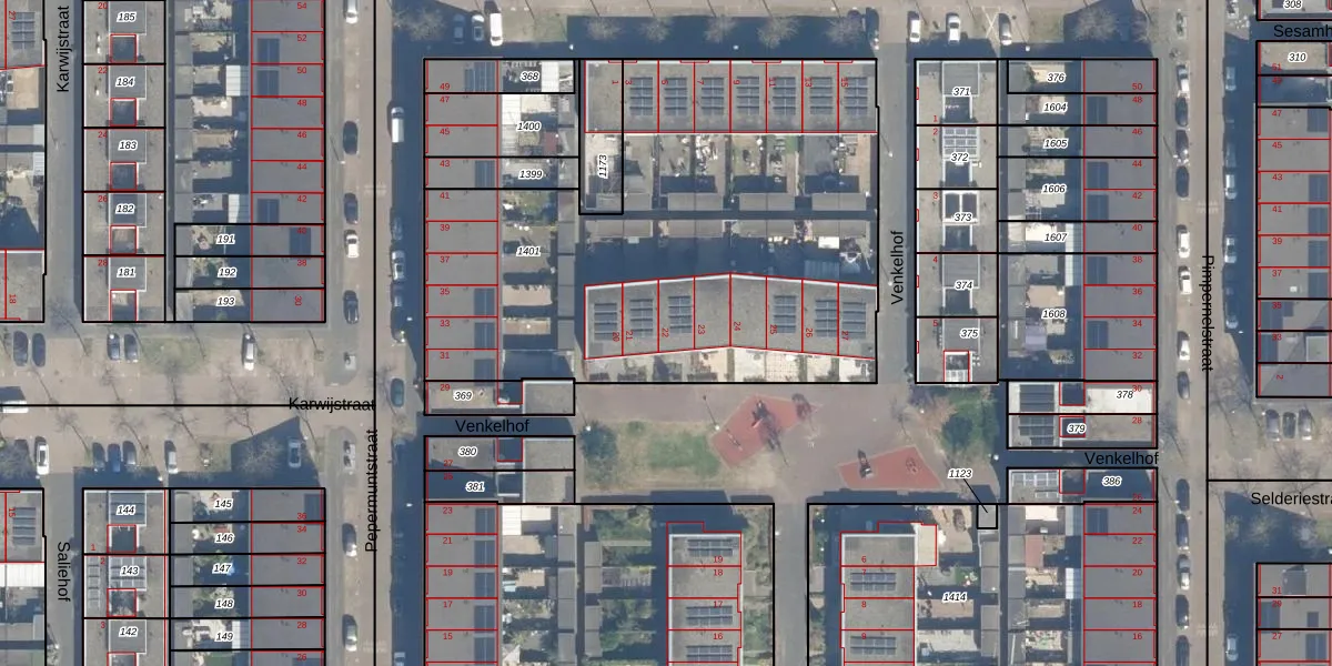 Het perceel waarop Venkelhof 22 staat heeft een oppervlakte van 2696 m². Dit is een zeer groot perceel. De perceeloppervlakte wordt geregistreerd door het Kadaster. Gedetailleerde informatie over de maten van dit perceel kunt u vinden in het rapport Kadastrale kaart met maatvoering van Venkelhof 22.