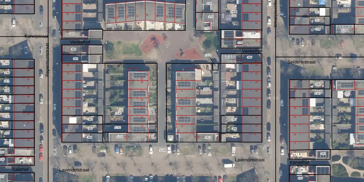 Het perceel waarop Venkelhof 8 staat heeft een oppervlakte van 1860 m². Dit is een zeer groot perceel. De perceeloppervlakte wordt geregistreerd door het Kadaster. Gedetailleerde informatie over de maten van dit perceel kunt u vinden in het rapport Kadastrale kaart met maatvoering van Venkelhof 8.